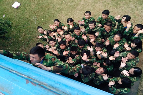 時間。大家一致推選營銷副總擔任總司令,并制定出在1個小時內完成的目標。項目是要求每位成員都要翻越4米多高的光滑墻面,且不能
